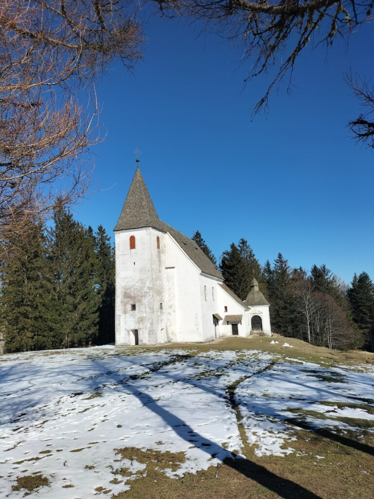 Une boucle facile sur le plateau d’Areh Pohorje, au départ de l’église, qui traverse la forêt avant de revenir vers le petit plan d’eau au centre de la station.