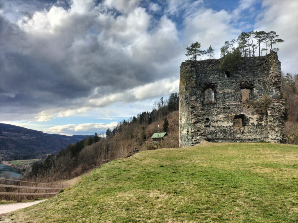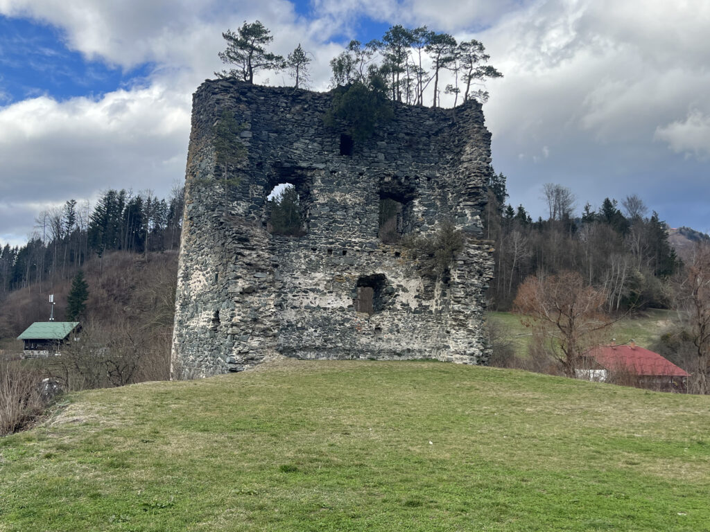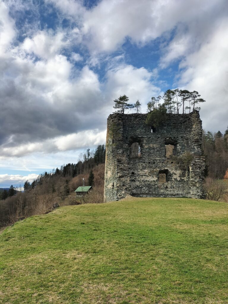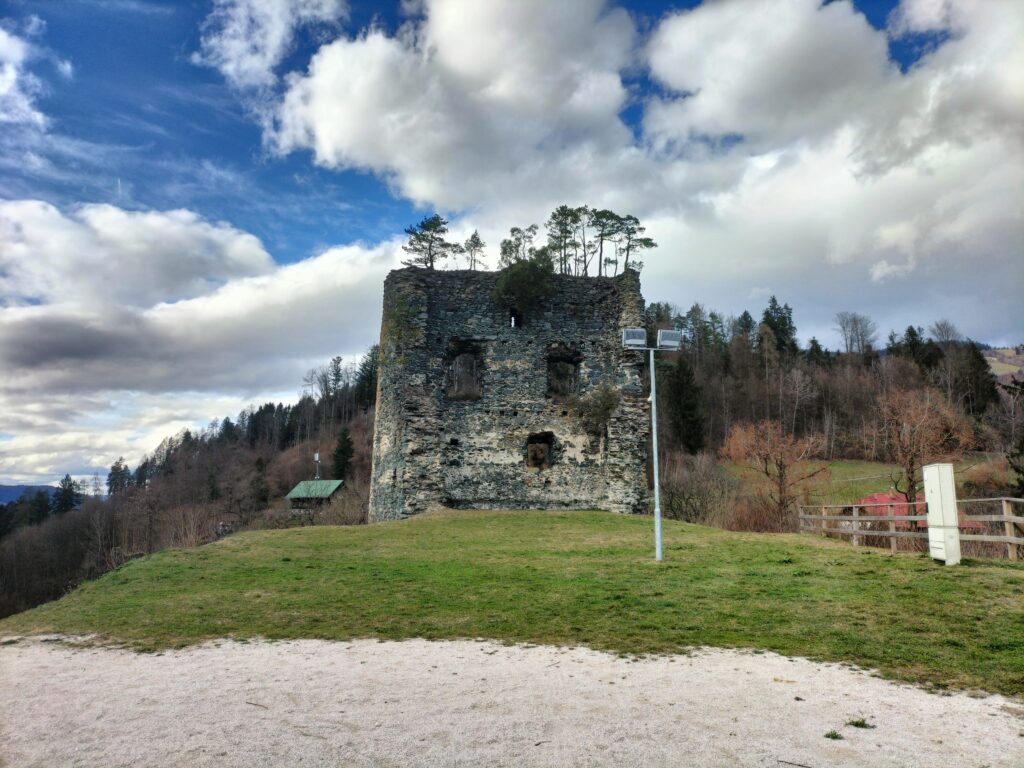 Au‑dessus de Dravograd, un sentier court mène aux vestiges d’un ancien petit château médiéval, dont il ne reste aujourd’hui qu’un mur encore debout. L’accès se fait en quelques minutes depuis le centre, sur un chemin simple qui monte légèrement à travers la forêt. Le site est modeste mais offre une vue dégagée sur la ville, la Drave et les collines environnantes. C’est une halte rapide, tranquille, et un bon point de vue pour compléter la visite de Dravograd.