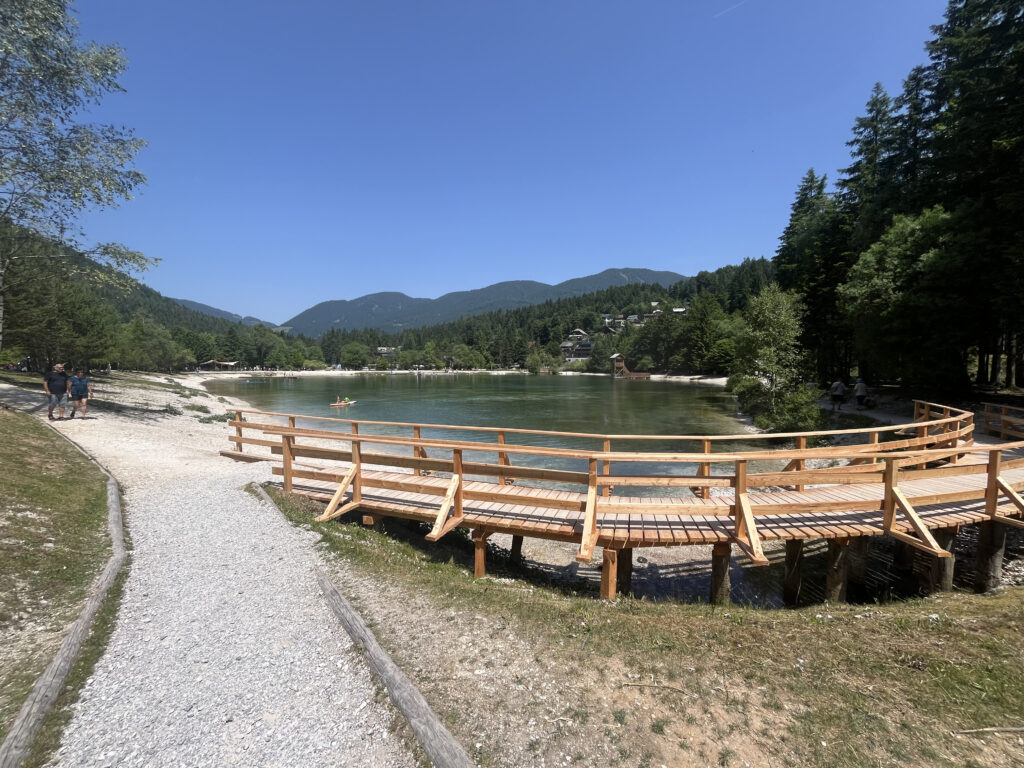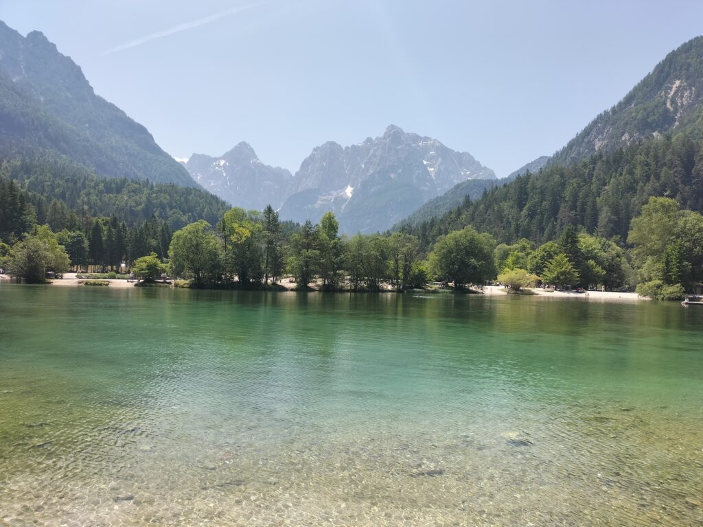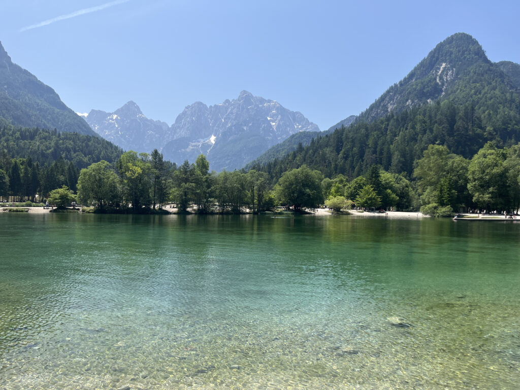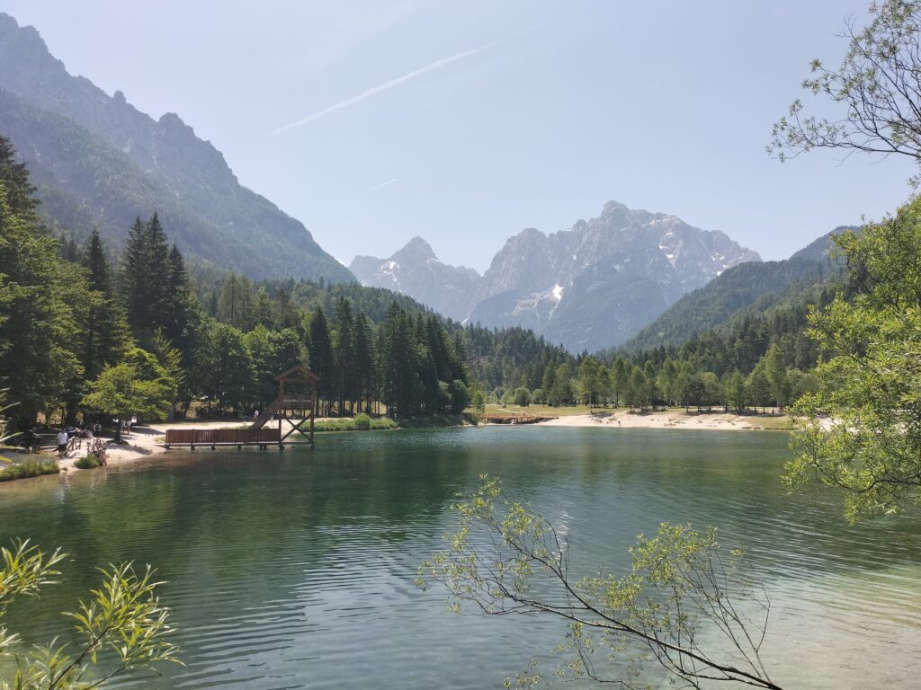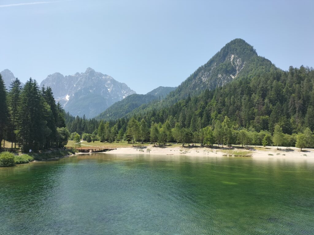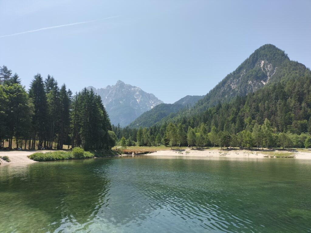 Ce tour, à proximité de Kranjska Gora est une boucle facile autour du lac Jasna, sur un sentier plat qui longe l’eau et offre une vue continue sur les montagnes du parc du Triglav.