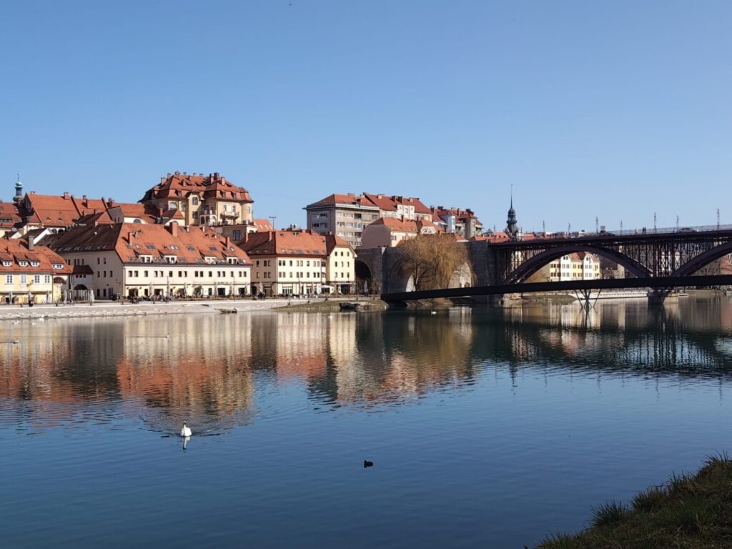 Maribor est une ville calme, mais avec une vraie activité étudiante et culturelle. La Drave traverse toute la ville et c’est l’axe principal pour courir, marcher ou simplement s’installer en terrasse au bord de l’eau. Le centre est compact, coloré, facile à parcourir à pied. C’est ici que j’ai vécu pendant mon Erasmus, et c’est une ville où le quotidien est simple, accessible et agréable. Si, comme moi, vous logez en périphérie de la ville, vous pouvez la rejoindre facilement et presque gratuitement grâce aux vélos mis à disposition par la ville (mbajk). Comme vous pouvez le voir sur les photos, la ville dispose aussi d’une station de ski : Maribosko Pohorje où l’on peut skier l’hiver et randonner l’été.
