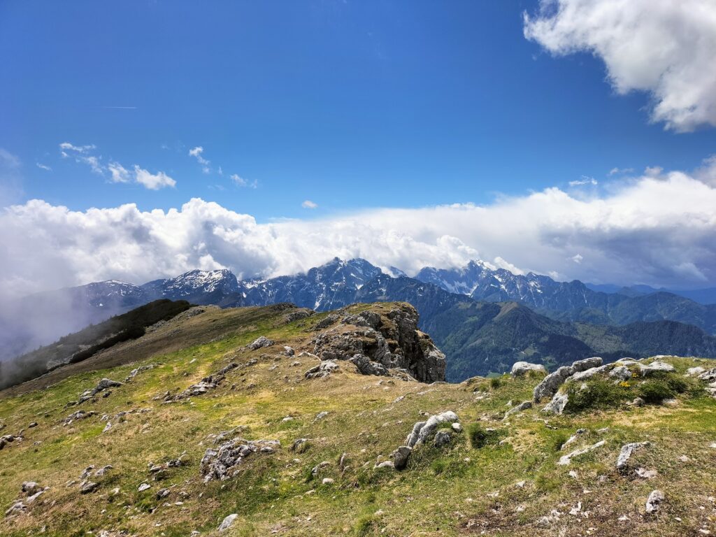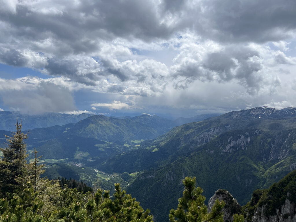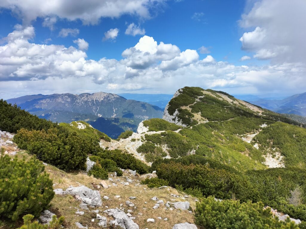 La boucle de Raduha est une randonnée alpine accessible qui permet de rejoindre un sommet panoramique des Alpes de Kamnik‑Savinja. L’itinéraire alterne forêt, alpages et sections rocheuses faciles, avec une montée régulière jusqu’à la crête. Le sommet offre une vue très ouverte sur les vallées environnantes et les massifs voisins.