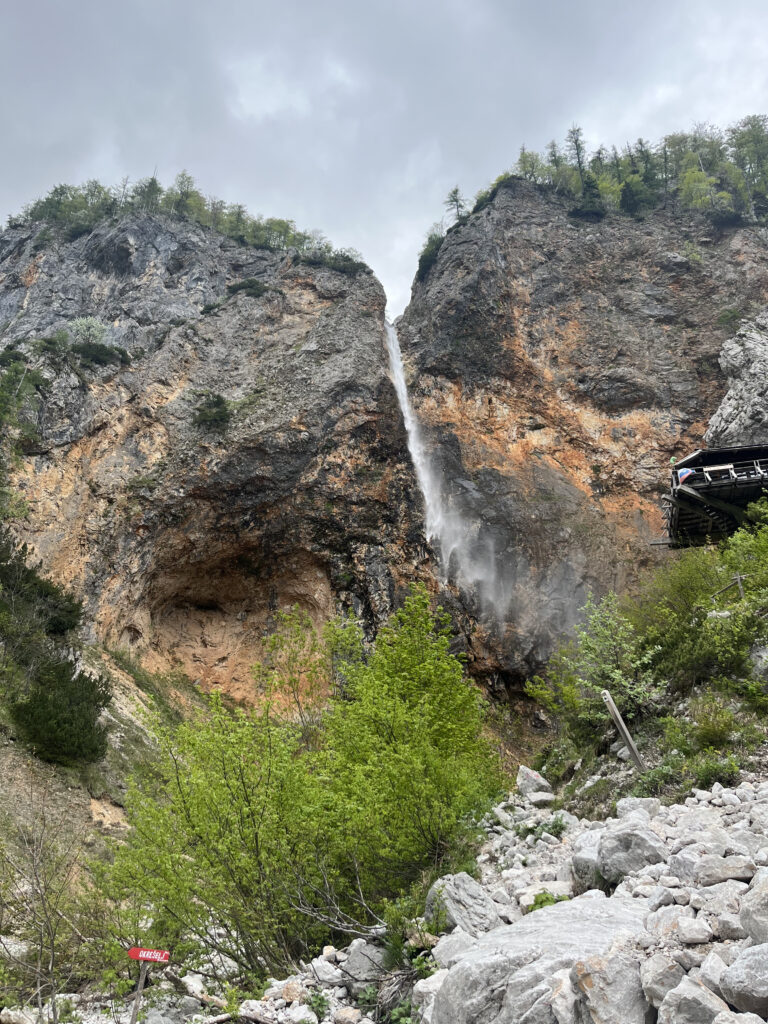 Slap Rinka est l’une des cascades emblématiques de la vallée de Logar (Logarska Dolina), connue pour sa chute verticale qui s’écoule depuis une paroi rocheuse étroite. L’accès se fait par un sentier court et bien aménagé, qui remonte la vallée jusqu’au pied de la cascade. Le site est compact mais spectaculaire, avec un petit refuge perché juste au‑dessus du bassin. La visite est rapide et s’intègre facilement dans une journée dédiée à Logarska Dolina.