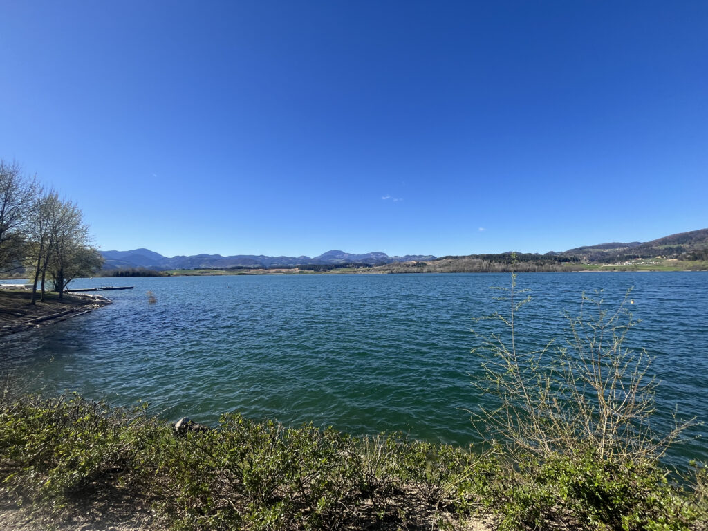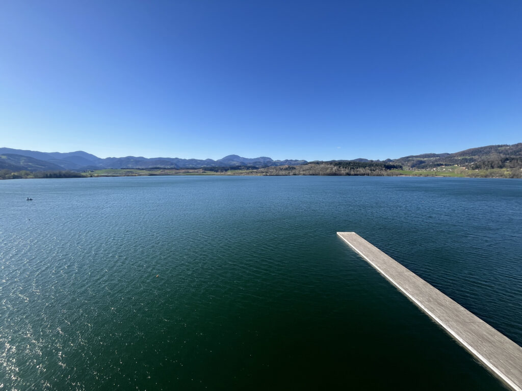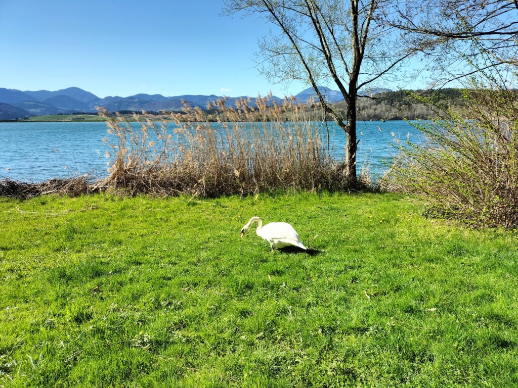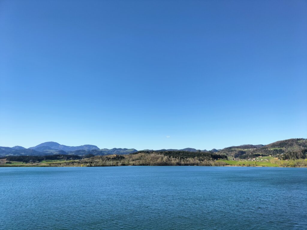 Une boucle facile autour du lac de Velenje, sur un itinéraire plat qui alterne chemins aménagés et passages en bord d’eau, avec quelques points de vue sur les collines environnantes.