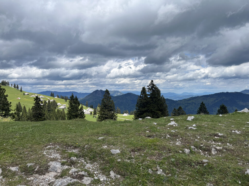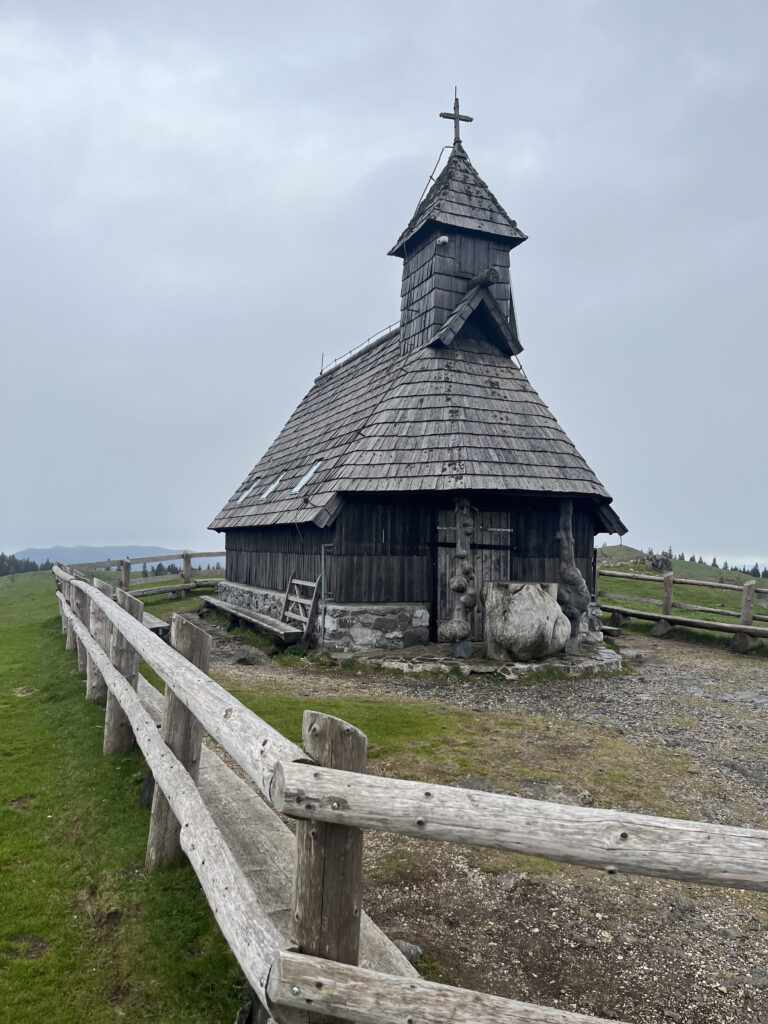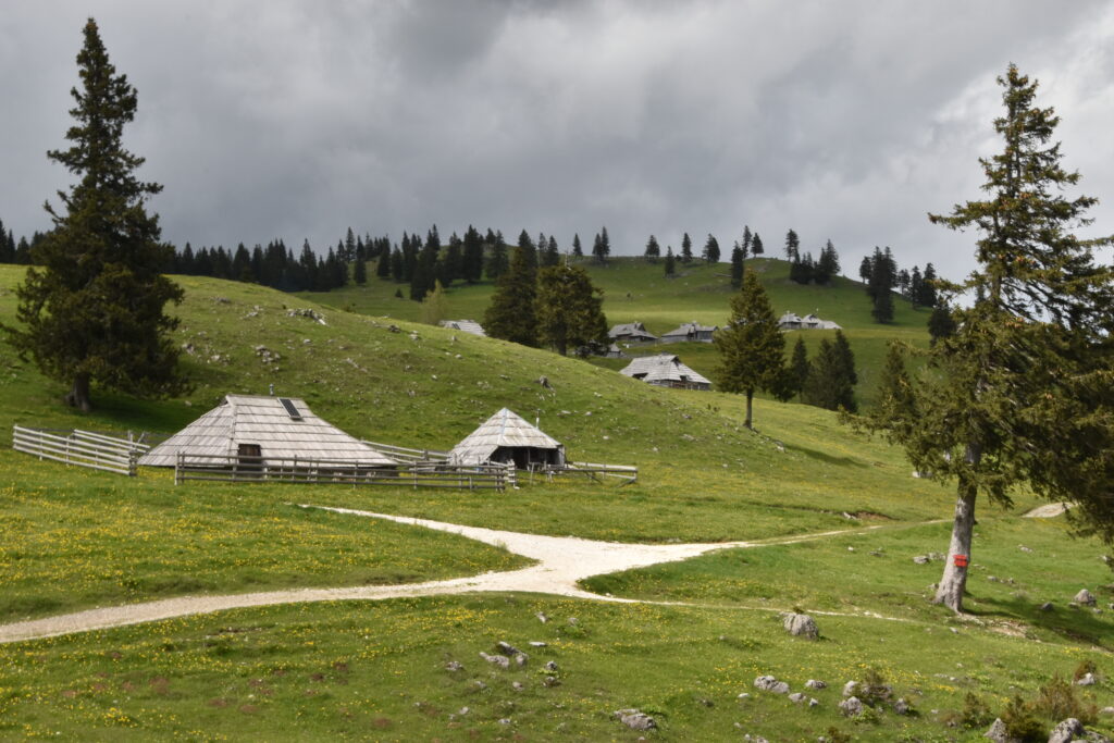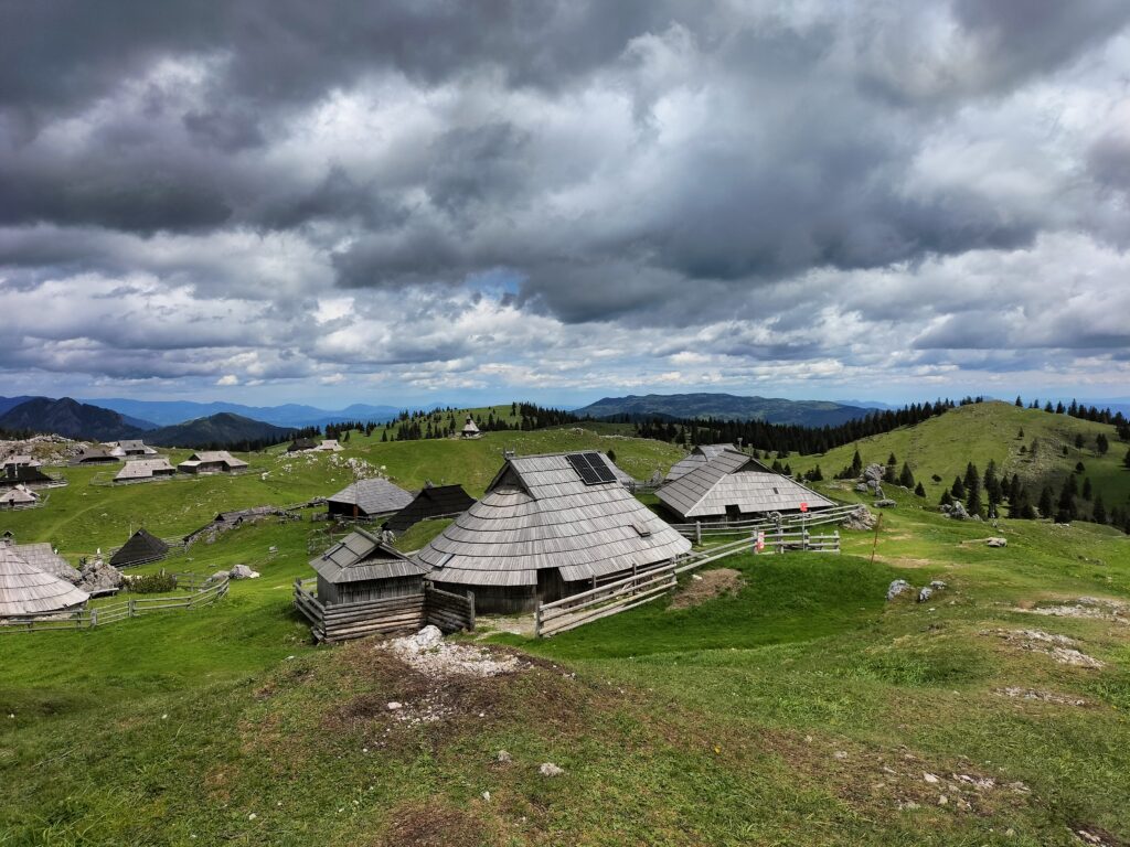 Une boucle facile sur le plateau de Velika Planina, un alpage connu pour ses maisons typiques, accessible facilement par une courte montée à pied ou en télécabine.