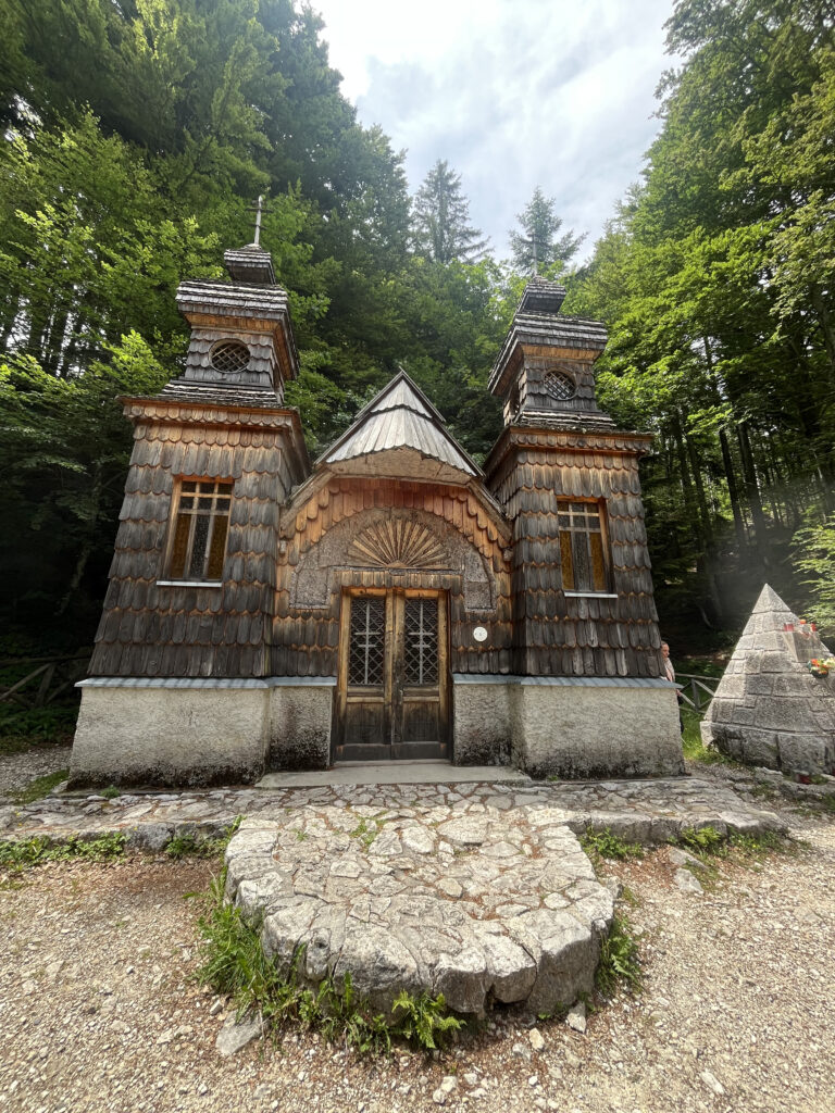 A la montée ou à la descente, pensez à vous arrêter à la chapelle russe (Ruska Kapelica), un monument historique incontournable du col de Vršič. Vous pouvez vous garer ici pour commencer votre marche jusqu’à la chapelle : 46.442762380793305, 13.768853633694635.